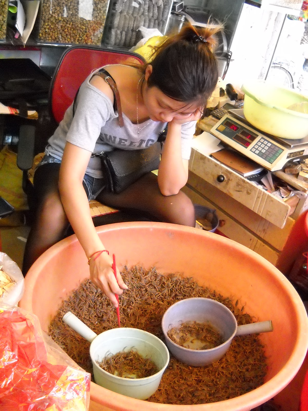 It's boring work sifting through live scorpions with chopsticks to pick out the slow or dead ones